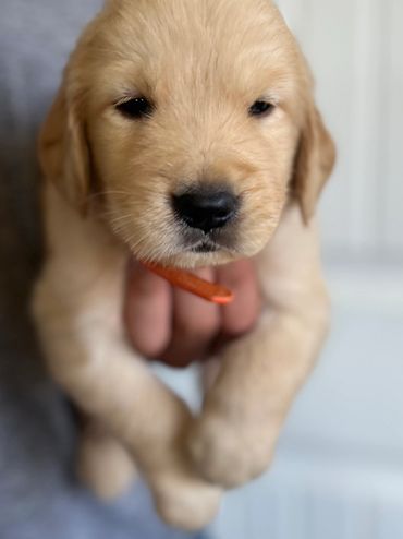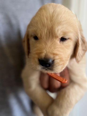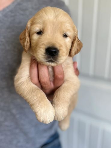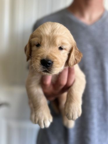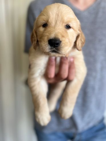 These precious Goldens were born to Luna and Charlie. The litter has two females and three males.